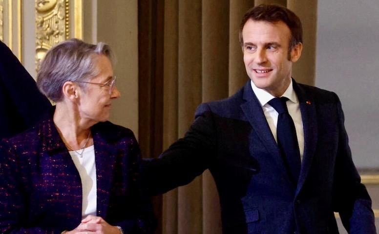 French President Emmanuel Macron (R) and French Prime Minister Elisabeth Borne at the Élysée Palace in Paris on December 12, 2022. © Gonzalo Fuentes, AFP