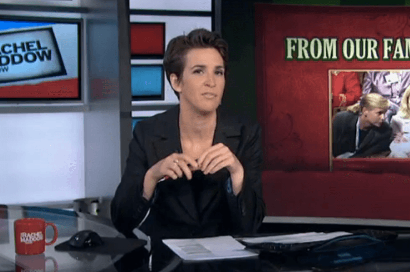 Maddow played video of the three Kardashian daughters heatedly arguing as a lead into discussing the fact that Liz Cheney and her sister Mary are publicly squabbling over the legitimacy of Mary's marriage to partner Heather Poe.