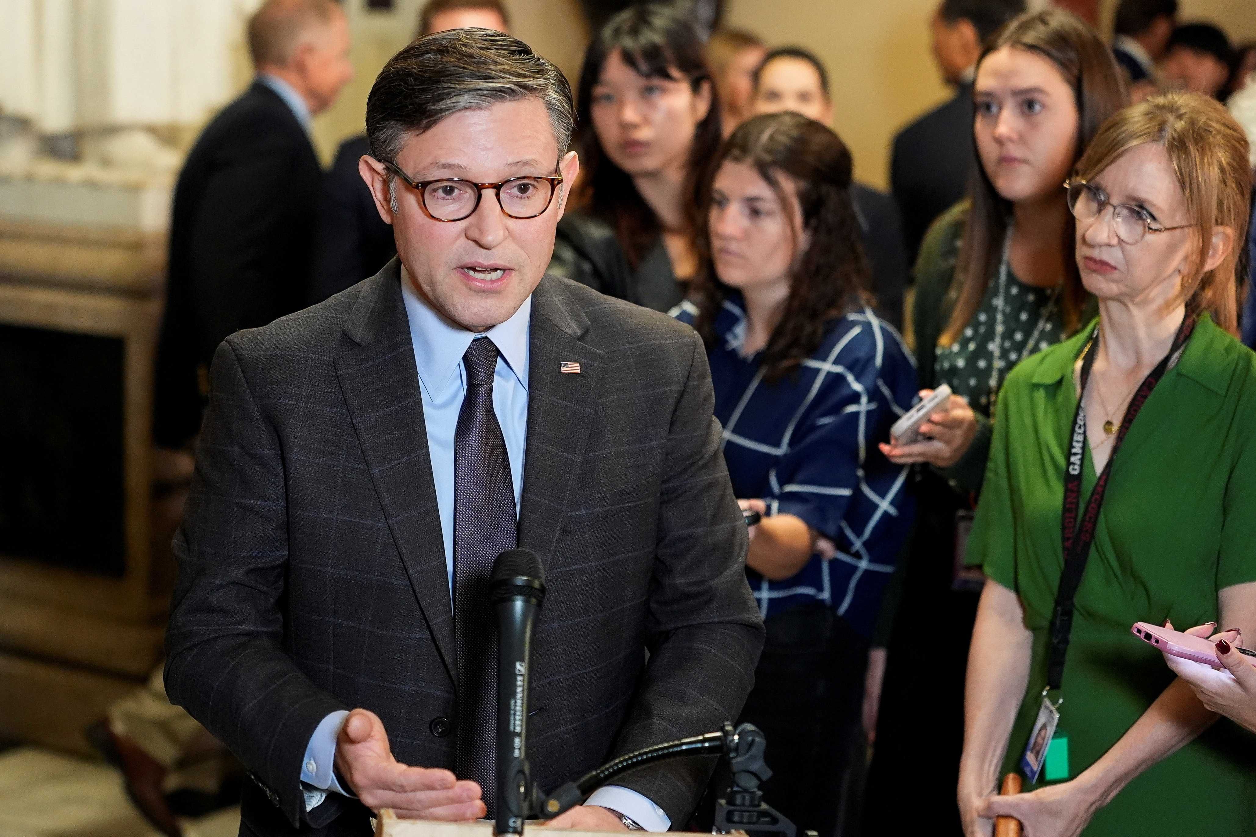Rep. Madeleine Dean (D-PA) berated House Speaker Mike Johnson (R-LA) at the Capitol on Tuesday over a social media post President Donald Trump made that she called "racist."