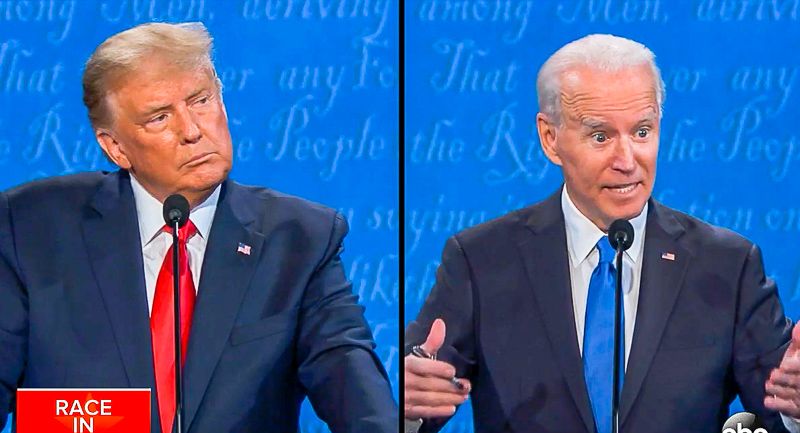 Donald Trump and Joe Bien appear at presidential debate 2020 (ABC/screen grab)