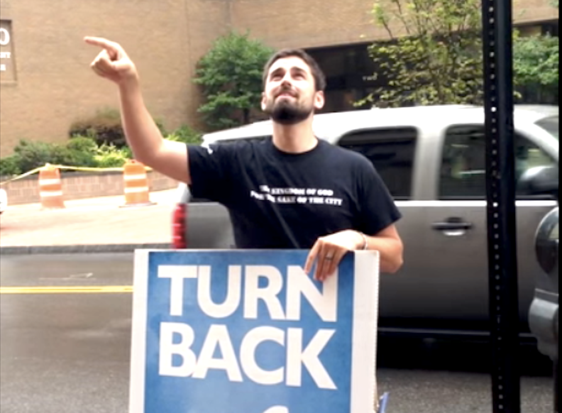 Image: Anti-abortion protester Brian Ingalls, who is being sued by the state of Maine (Screen capture)