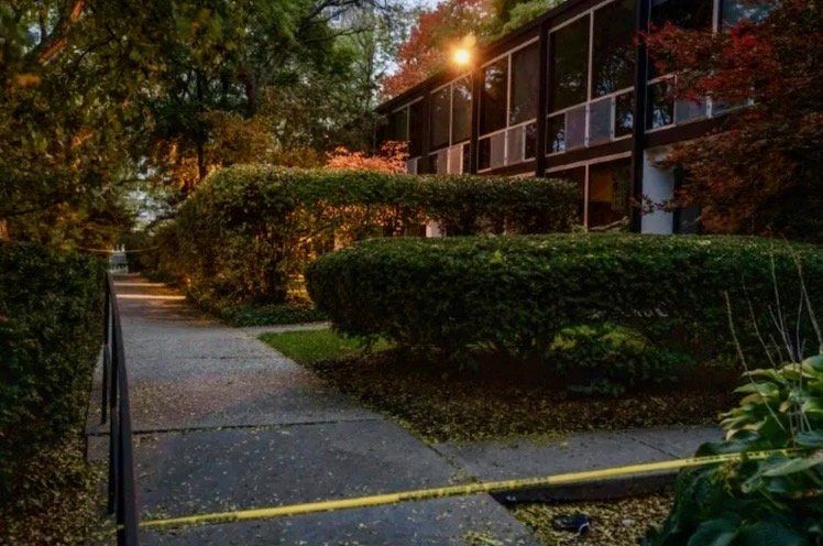 Police tape blocks the area where a Detroit synagogue president Samantha Woll was found dead on October 21, 2023 (Sarah RICE)