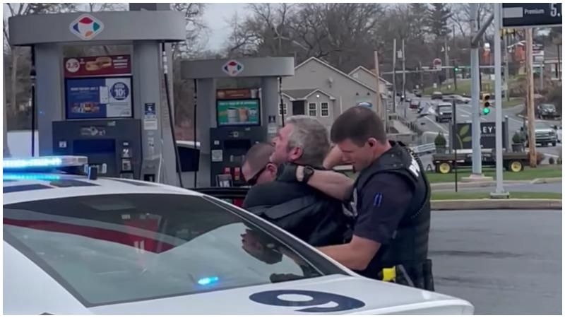 Man puts anti-Biden stickers on gas pumps – then has a meltdown when cops show up and gets tackled