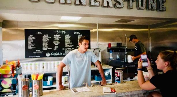 Dawson Padilla, left, owner of a smoothie shop, Oklahoma
