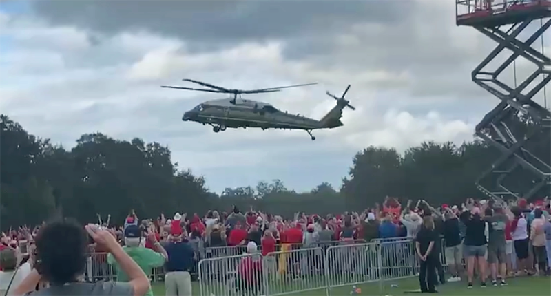 Marine One buzzes the crowed at a campaign rally at Florida's "The Villages" (screengrab).