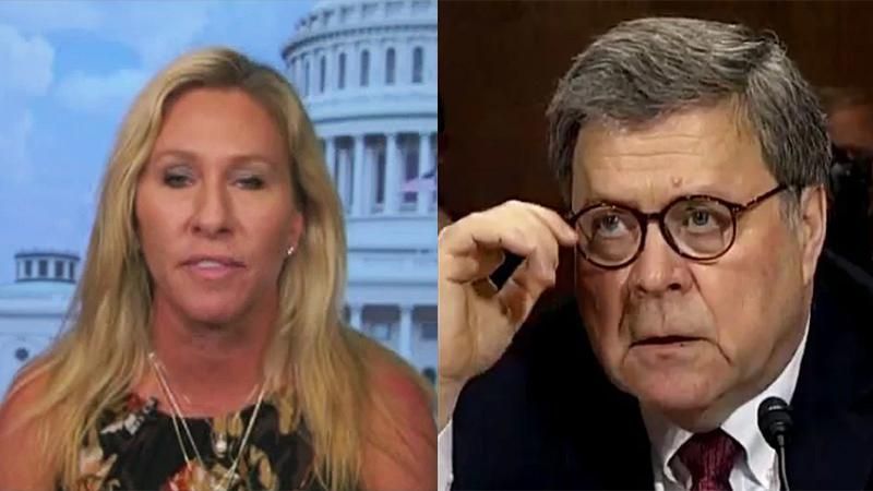 Rep. Marjorie Taylor Greene's (R-GA) latest conspiracy is that former Attorney General Bill Barr is secretly part of the anti-Trump resistance.