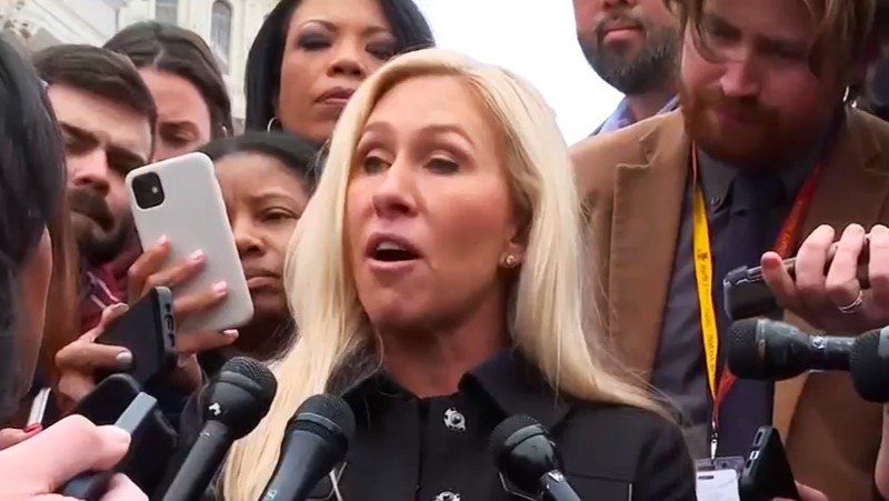 Rep. Marjorie Taylor Greene (R-GA) talks with reporters (Screen cap via CNN)
