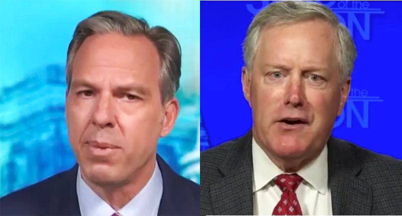 Toward the end of a long and combative interview with Mark Meadows, CNN "State of the Union" host Jake Tapper called out Donald Trump's White House chief of staff for lying to him earlier in the segment when he claimed no Post Office high-volume sorting machines were being hauled away to slow down mail delivery.
