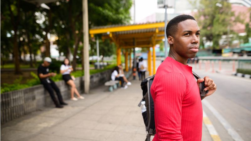 Black man waiting on the bus. [ Photo: shuttershock/ By Ranta Images]