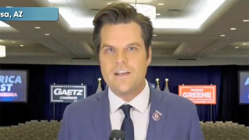 As CNN broke a bombshell report on Saturday that a woman who had dated Rep. Matt Gaetz (R-FL) was cooperating with federal authorities, the controversial Florida man was in Arizona to support widely-panned Arizona audit.