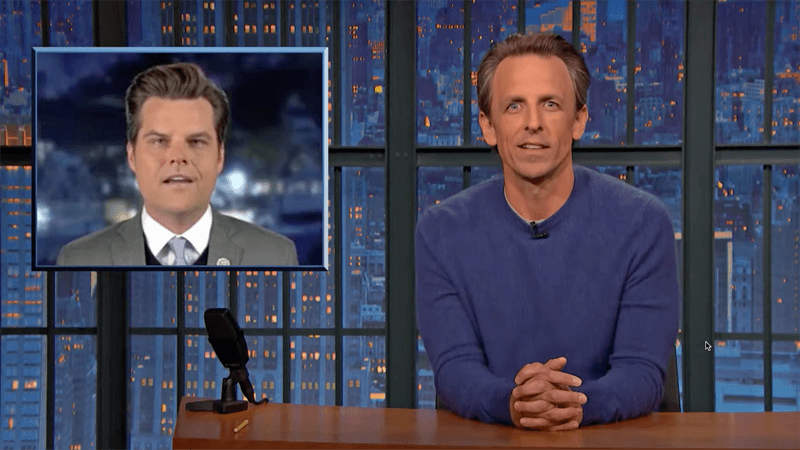The host of "Late Night with Seth Meyers" on Thursday updated his viewers on the latest news on the alleged Matt Gaetz sex scandals.