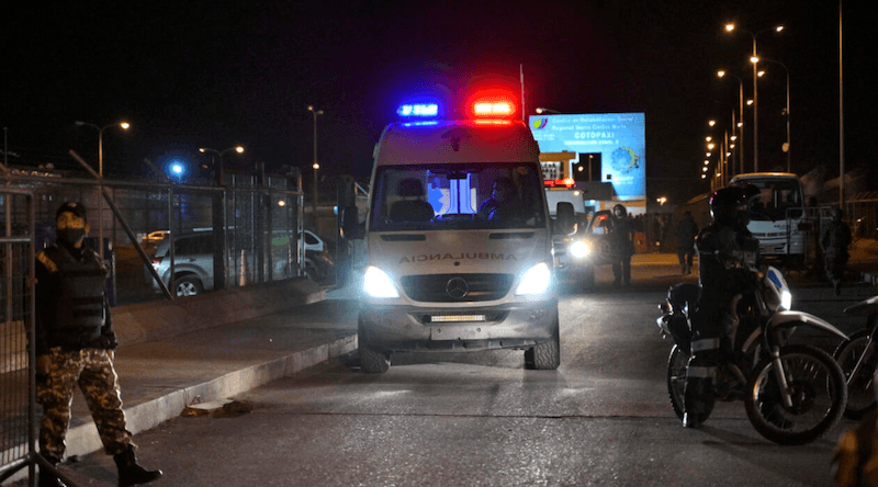 An ambulance leaves the prison, where repeated outbreaks of deadly violence linked to drug trafficking have occurred RODRIGO BUENDIA AFP