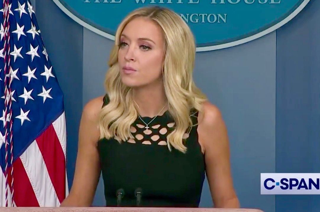 "So the President makes hiring decisions based on the fact that he likes to have countervailing viewpoints," McEnany, appearing to read a document from the podium, replied.