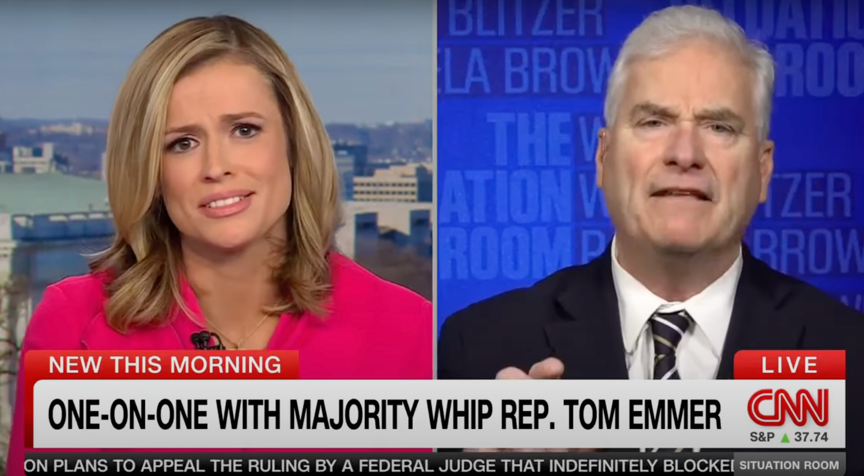 Republican Majority Whip Rep. Tom Emmer (R-MN) took issue Wednesday with the way CNN anchor Pamela Brown repeatedly asked about possible cuts to Medicare, Medicaid, and Social Security.