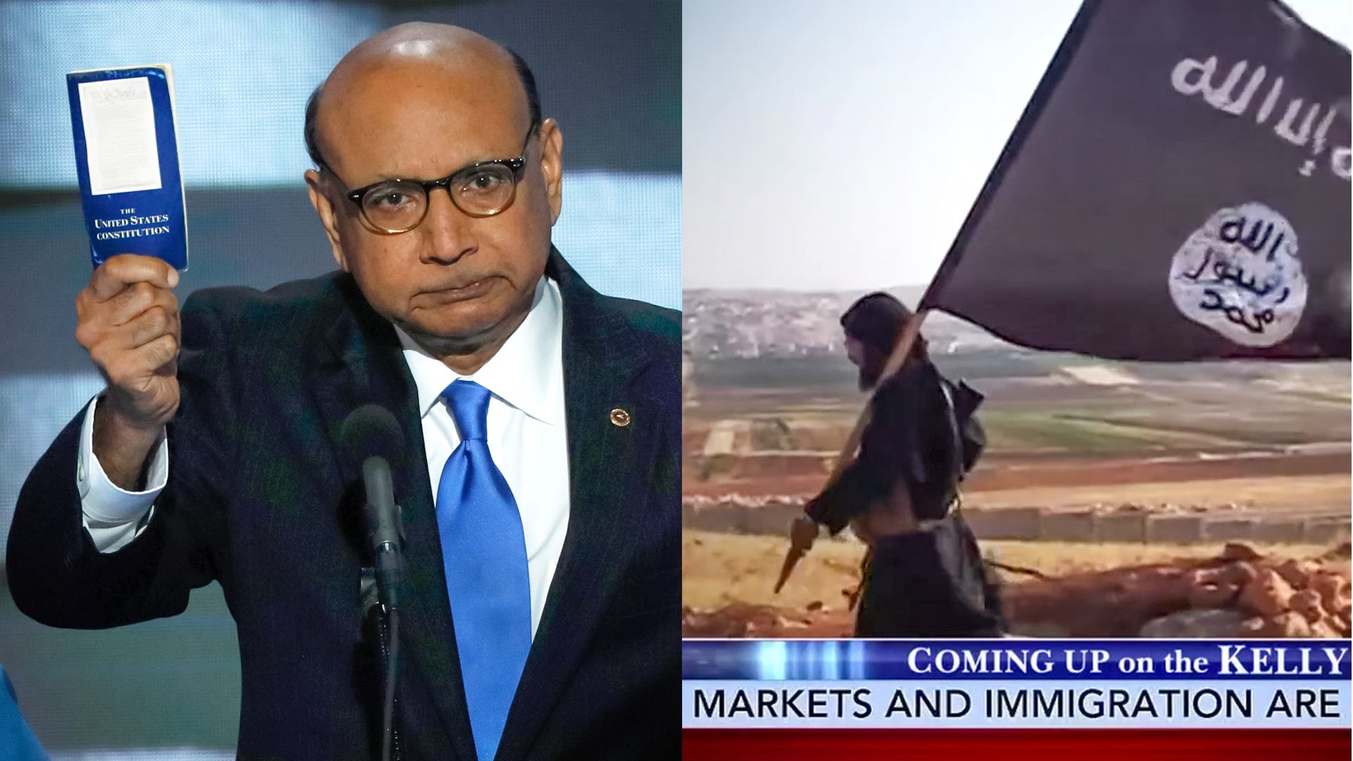 Khizr Khan speaks at the Democratic National Convention/Fox News airs image of ISIS fighter