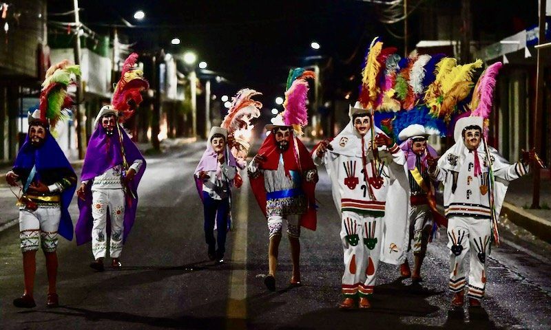The feather-topped masks, hand-embroidered clothes and European-style costumes are a celebration of the cultural collisions that have shaped the region.