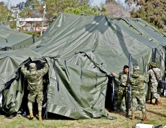 Mexican troops set up a temporary shelter near the U.S. border in the northeastern city of Matamoros (QUETZALLI BLANCO/AFP)