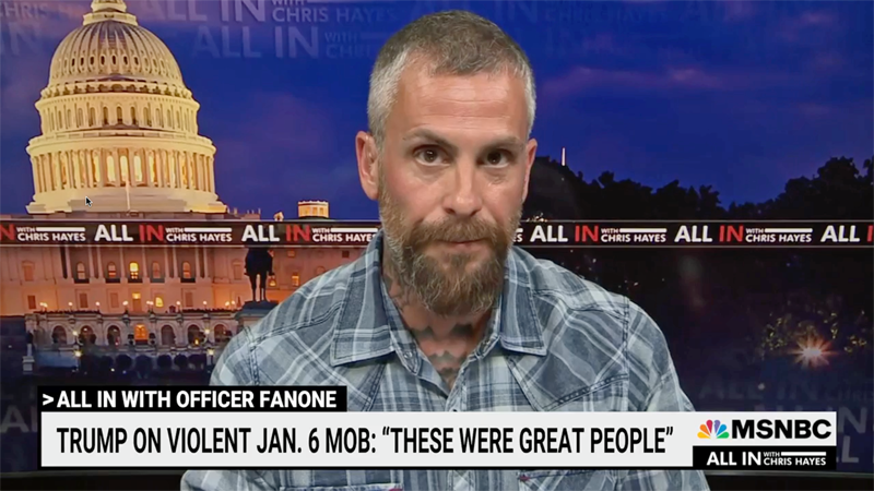 Fanone, who is still out on medical leave following the injuries he sustained in the attack, was interviewed by MSNBC's Chris Hayes.