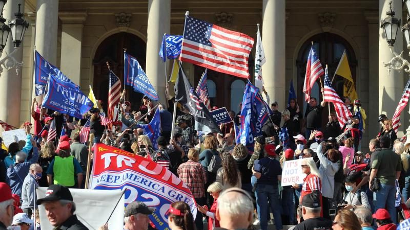 The crowd at a Trump Rally outside the Michigan State Capitol protesting his loss, Saturday, Nov. 7, 2020. (Anna Liz Nichols)