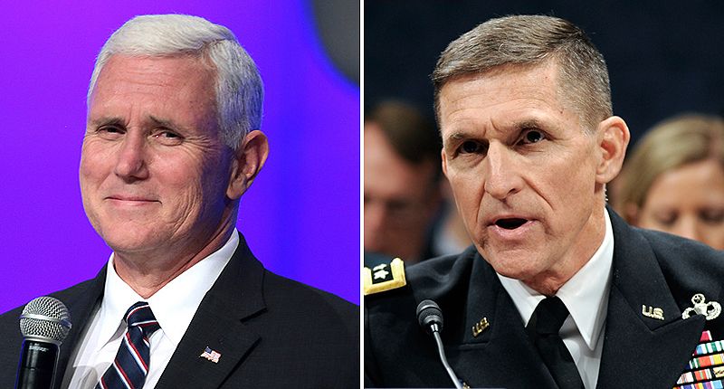 Vice President Mike Pence (Flickr / Gage Skidmore) and former national security adviser Mike Flynn (Defense Intelligence Agency)
