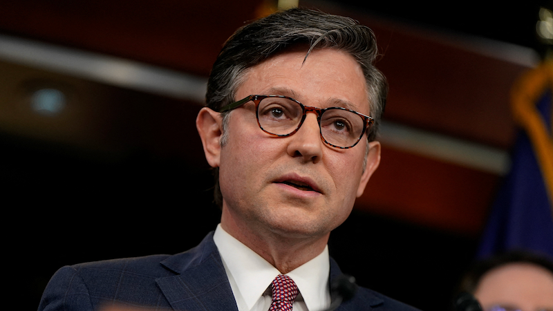 House Speaker Mike Johnson (R-LA) made a horrific apparent gaffe when discussing a swastika spotted in a Republican congressman's office.