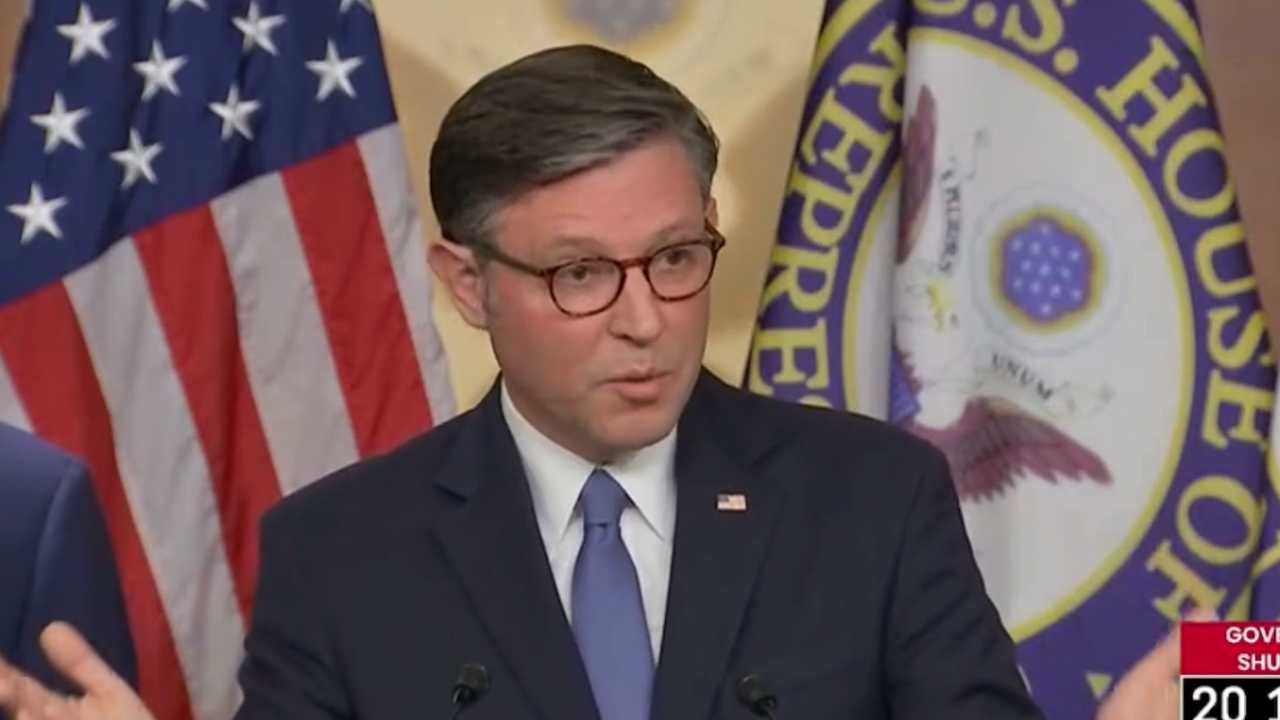House Speaker Mike Johnson (R-LA) responded to a pardoned Jan. 6 rioter's threat to kill the House Democratic leader by saying that violence was "triggered" by the recent No Kings protests opposing President Donald Trump.