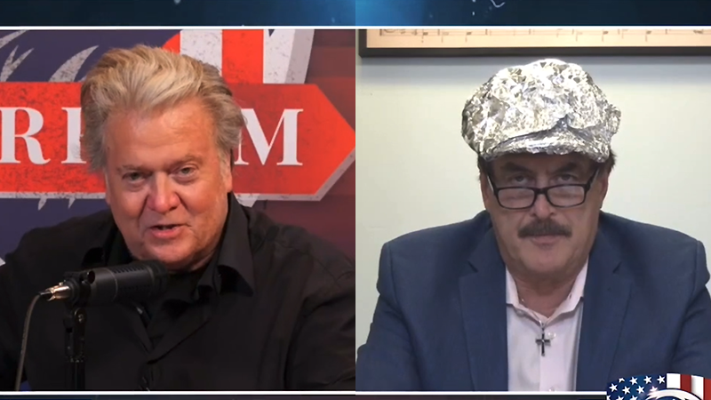 Mike Lindell speaks to Steve Bannon in a tinfoil hat (Photo: Screen capture)