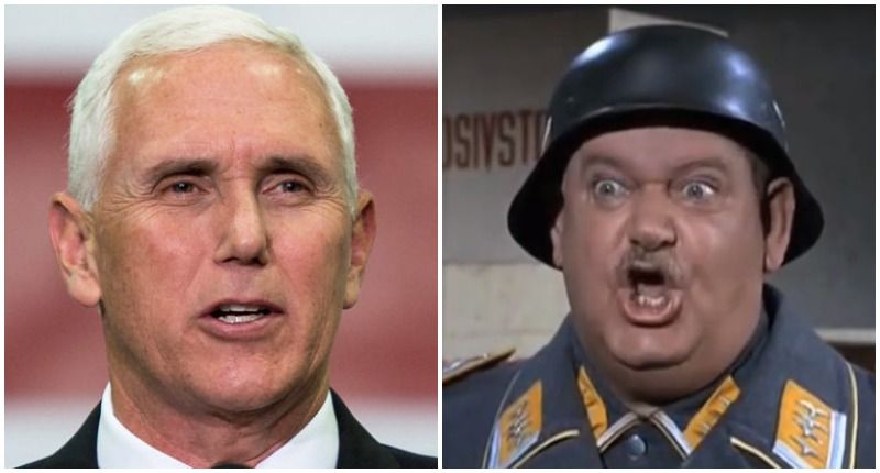 Vice President Mike Pence, left, and 'Hogan's Heroes' character Sgt. Schultz, right