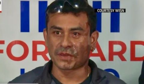 Mahud Villaluz toldCNN affiliate WISN that a man confronted him over a parking spot, called him "an illegal," and told him to "go back to [his] country" before throwing battery acid at him. The incident was caught on surveillance video and a 61-year-old man was arrested in connection with the crime on Monday.
