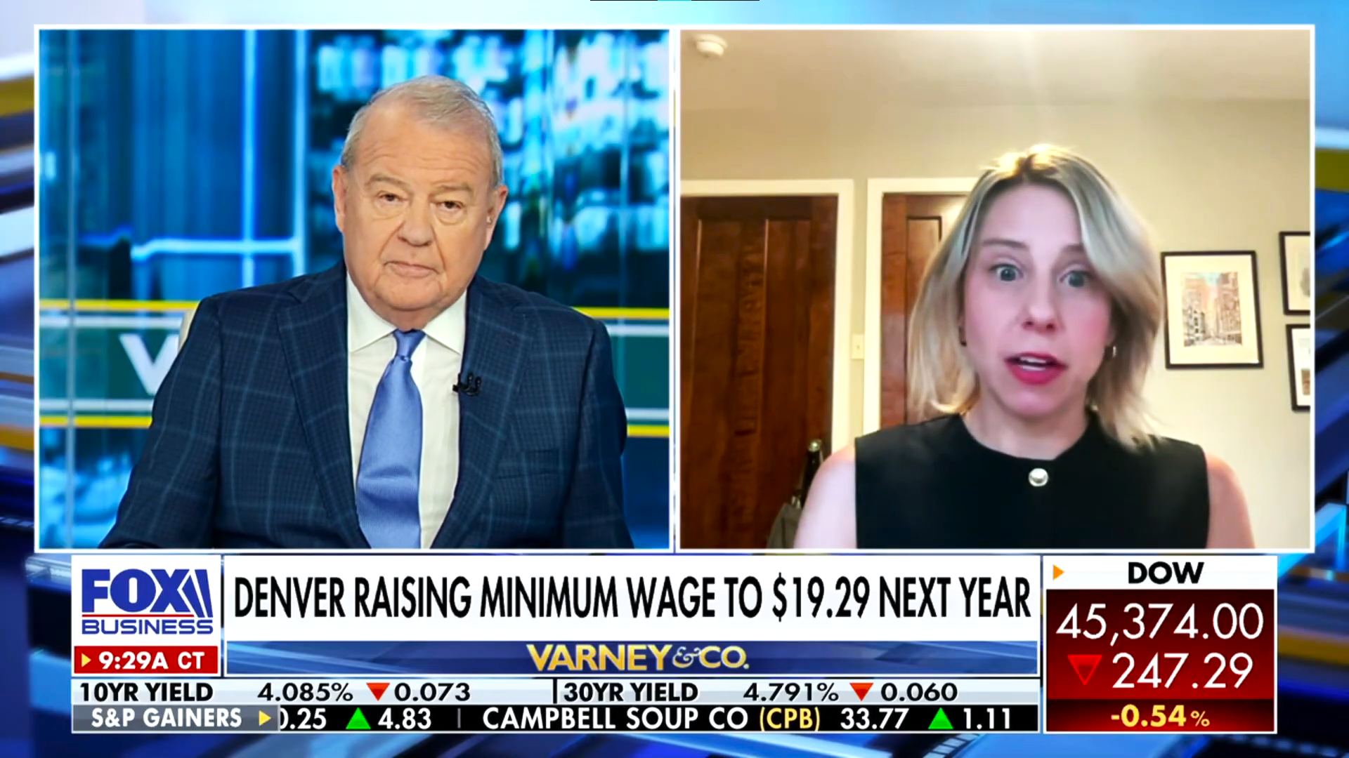 “On Jan. 1, I believe that the minimum wage in Denver goes to $19.29 an hour; that's up $0.48 cents from where it is now,” Varney said. “That doesn't seem to be a whole lot of money. You can't afford it?”