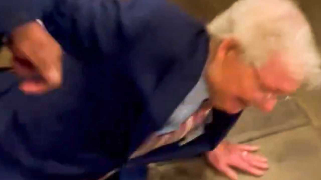 Members of the Sunrise Movement captured video of the senator falling on Thursday. He was quickly led away with the help of his aides.