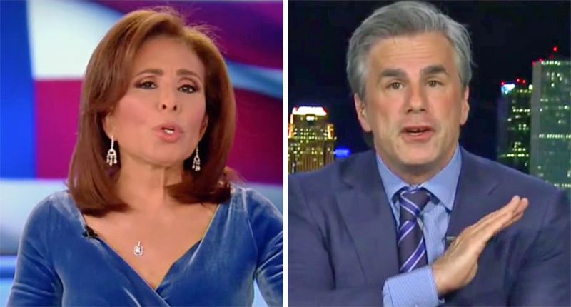 Composite image of Jeanine Pirro and Tom Fitton on Fox News (screengrab)