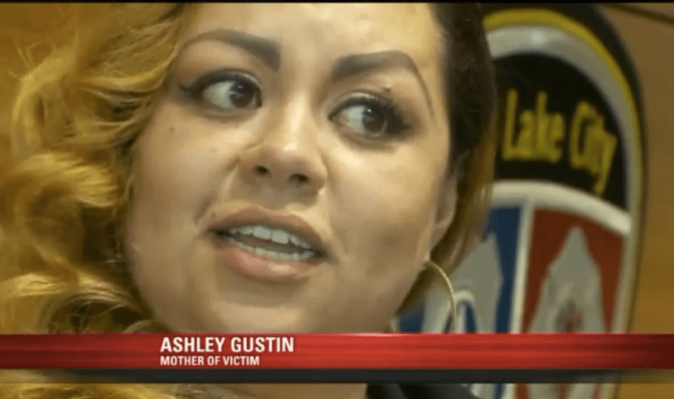 Utah mom Ashley Gustin at Thursday's press conference where she asked for information in the killing of her son Paris (Screen capture)