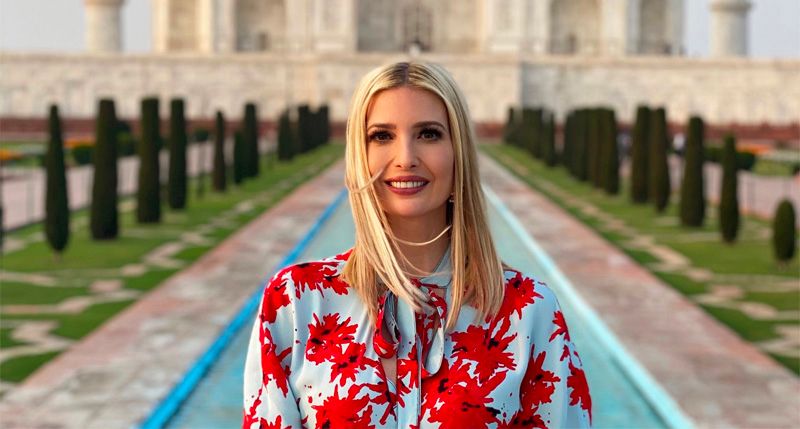 Donald Trump's daughter, a senior White House adviser, has taken to using her Twitter feed to promote herself (usually via photos or video clips) as she travels the world, presumably representing the United States. Monday morning's tweet was no exception, with the two pictures accompanied by, "The grandeur and beauty of the Taj Mahal is awe inspiring!" followed by emojis of the American flag and India's flag.