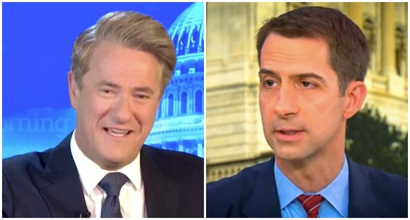 MSNBC's Joe Scarborough and John Heilemann blasted Sen. Tom Cotton (R-AR) and other Republican "toadies" for sucking up to President Donald Trump instead of calling out his clearly "unmoored" behavior overseas.