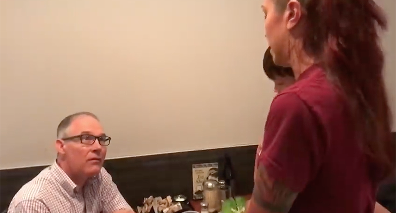 In an encounter on Thursday of last week, a mother was having lunch with her 2-year-old in Washington, D.C. when she spotted Pruitt. She said she approached him and calmly and quietly critiqued his resistance to clean air and clean water.