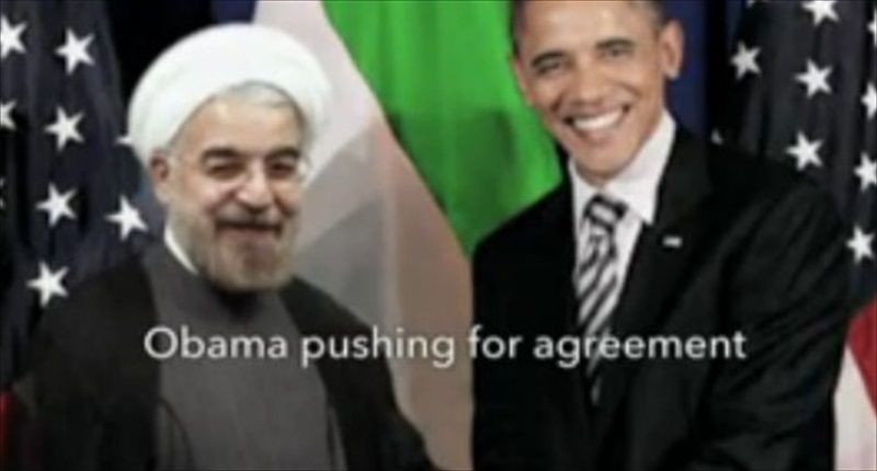 Fake picture used by GOP PAC showing President Obama and Hassan Rouhani on July 24, 2015. [MSNBC]