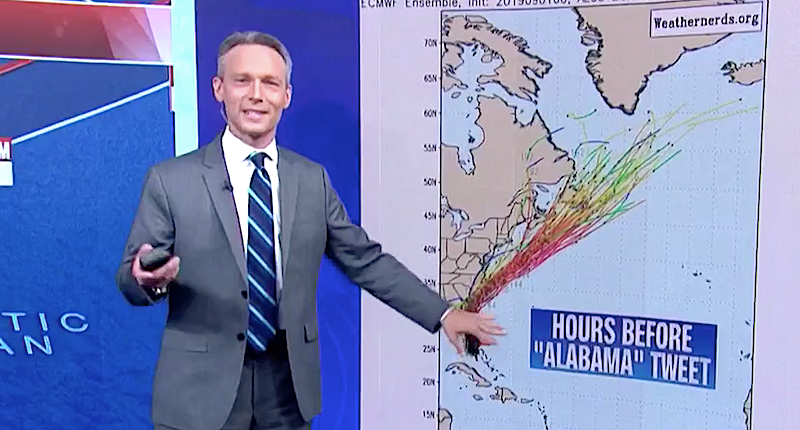 "He said this was the forecast map that made him say Alabama was in the path, and these are all the computer models, the spaghetti, they even go into Louisiana and Mississippi," Karins said. "Looks horrible, right? Then I looked closer down here and the data that was Aug. 28, four days before he sent the tweet. So then I said why would he send a map out four days in advance?"