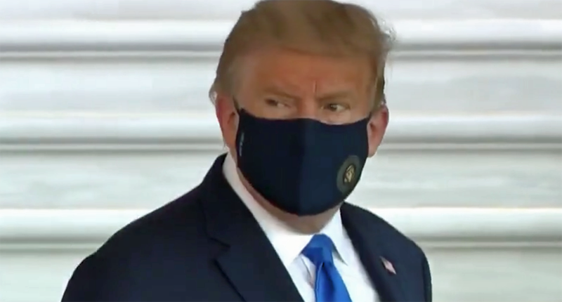 President Donald Trump leaving the White House in a mask while being airlifted to Walter Reed Medical Center (screengrab)