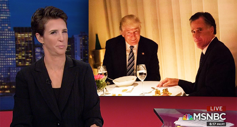 An unnamed Russian government official said he was "relaying talks circulating in the ministry of foreign affairs," Maddow said. "What he heard was astonishing. People were saying the Kremlin intervened to block Trump's first official choice for Secretary of State, Mitt Romney."