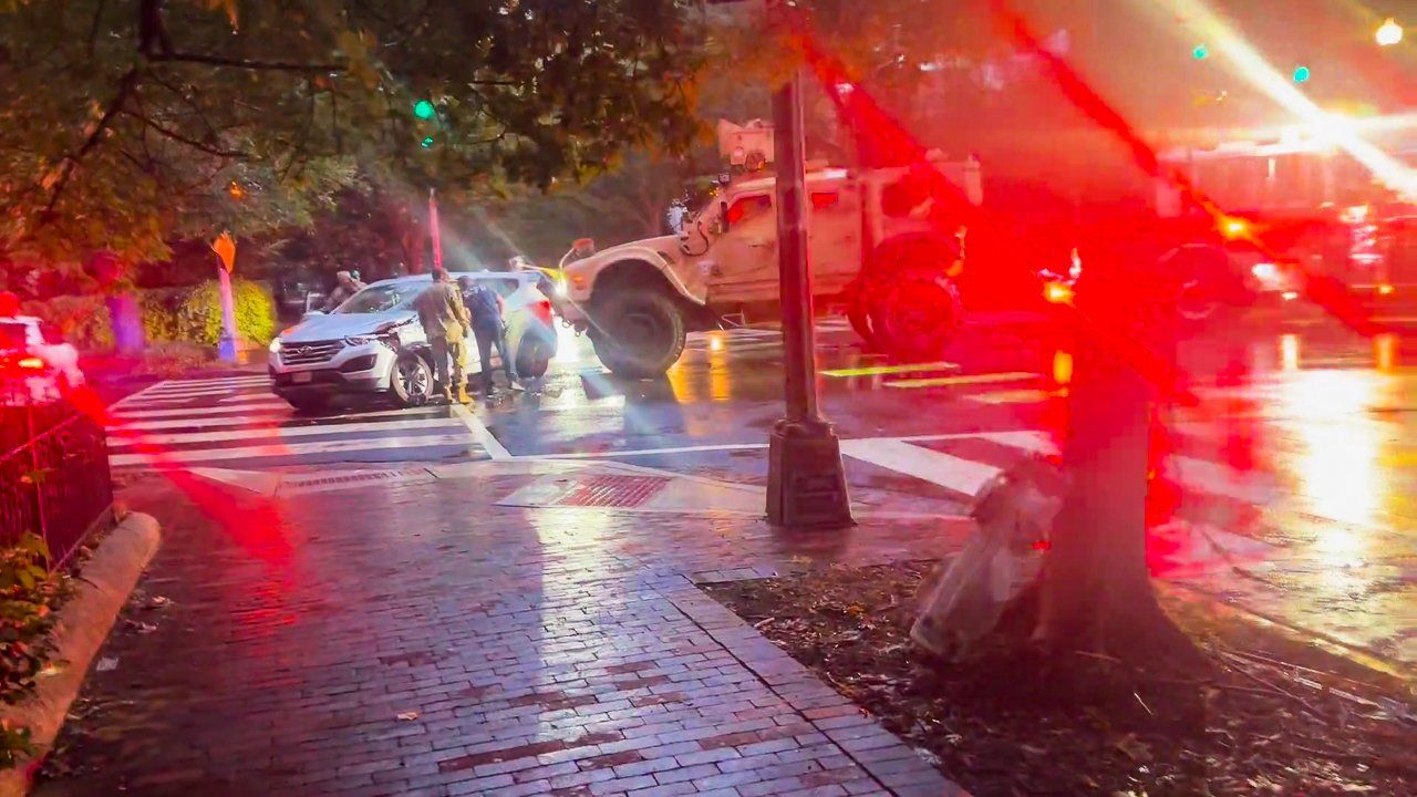 A heavy National Guard vehicle reportedly T-boned a driver in Washington, D.C. in an early morning crash that required rescuers to deploy the jaws of life.