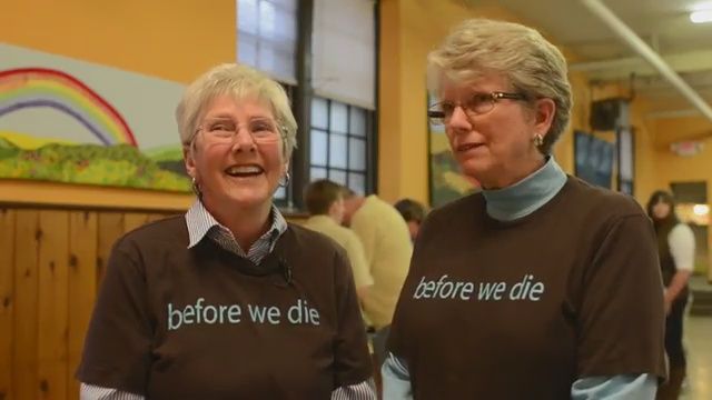 Lesbian couple Brenda Clark and Carol McCrory, who have been together 25 years, praised Buncombe County Register of Deeds Drew Reisinger after he accepted the application, according to The Associated Press.