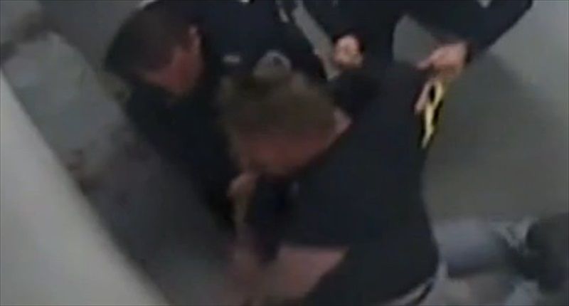 Police officers attack Ross Flynn inside his jail cell in December 2014. [KTMS-TV]