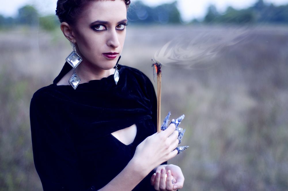 [image of Wiccan adherent burning a smudge stick via Shutterstock.com]