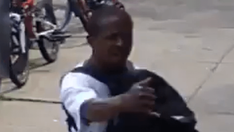 "The victim was walking down Rutland Road near Brooklyn Ave. in East Flatbush around 10:15 a.m. Thursday when the suspect yelled out, cops said," wrote Rocco Parascandola. "Video released by police Friday shows the suspect, wearing a white T-shirt and a backpack on his chest, making hand gestures to the victim off camera. The 30-year-old victim told cops he didn't know his harasser. The NYPD Hate Crime Task Force was investigating incident, cops said."