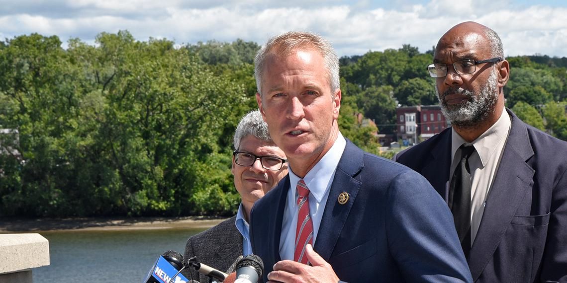 Congressman Sean Patrick Maloney at a Press Event on the Hudson River. (NYS DEC)