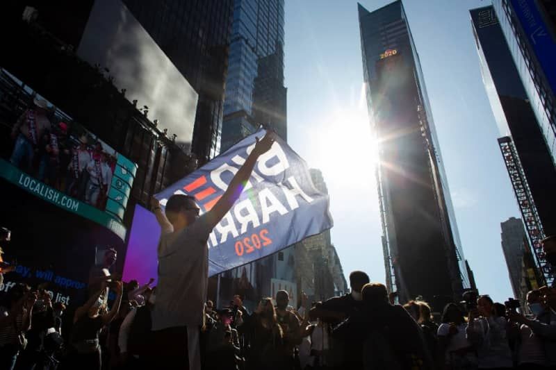 Social media footage showed the renowned filmmaker Spike Lee jumping in elation on the streets of his home borough Brooklyn, popping champagne as onlookers danced and cheered.