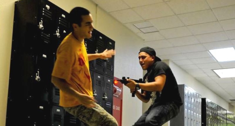 After the video was reported to the police, they searched the houses of the minors involved but only found bb guns and fake weapons.
