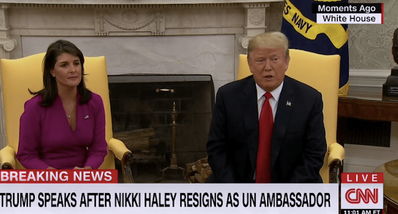 President Donald Trump and UN ambassador Nikki Haley met in the Oval Office Tuesday to announce Haley's resignation from the post.