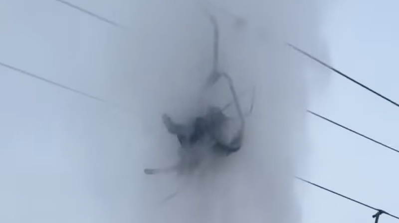 WATCH: Skiers hospitalized after getting stuck on chairlift above ruptured hydrant